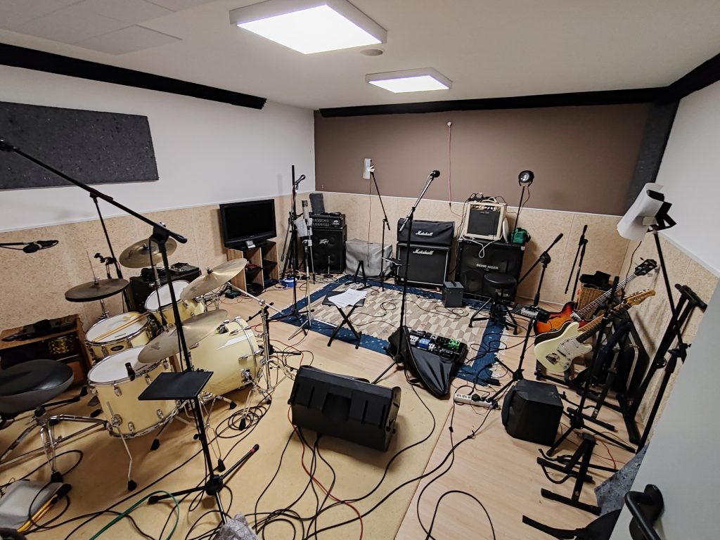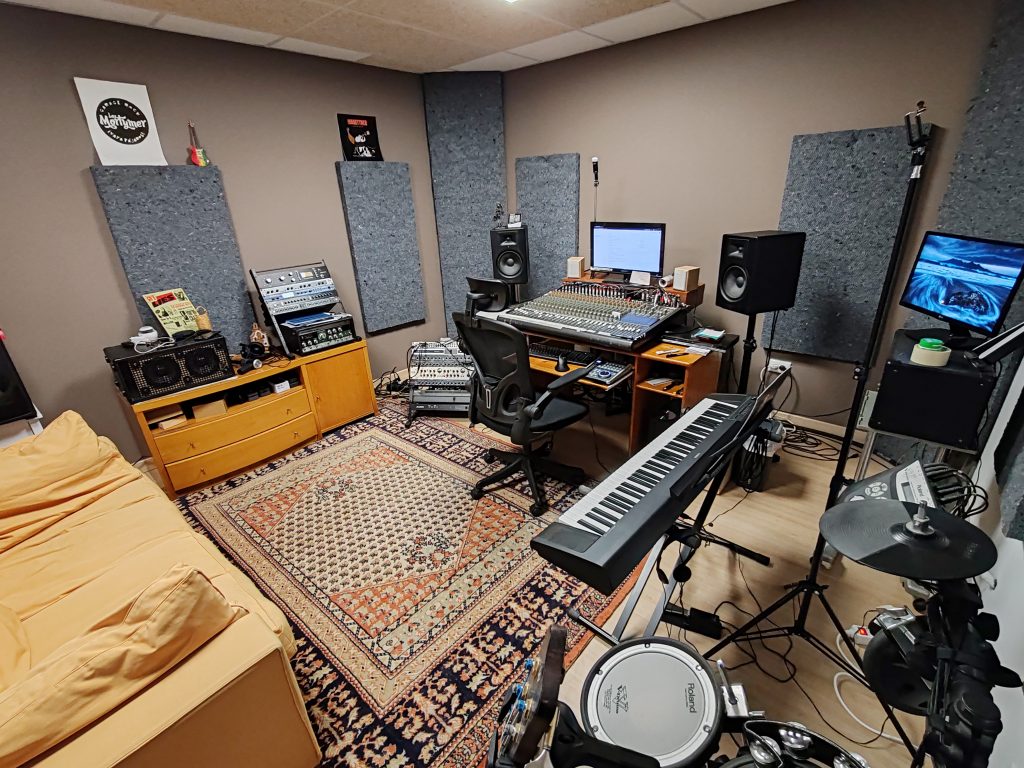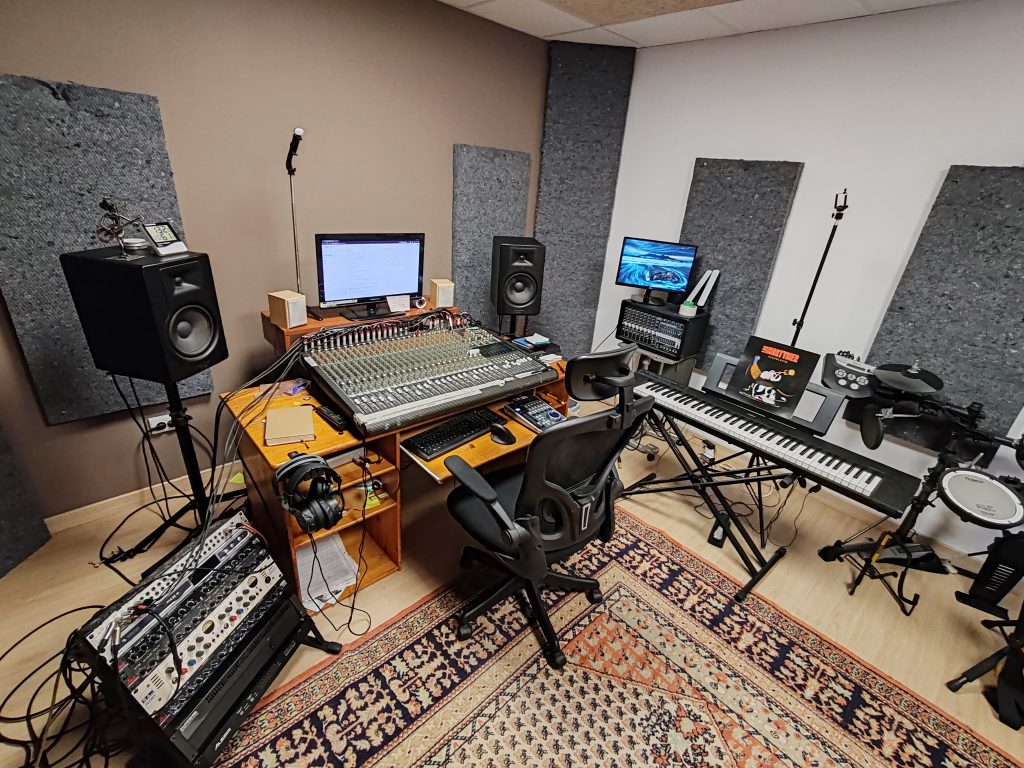 El estudio cuenta con una sala de grabación de unos 25 metros cuadrados con un tratamiento acústico intermedio (ni muy seca ni muy viva) y un control room de 22 metros cuadrados.