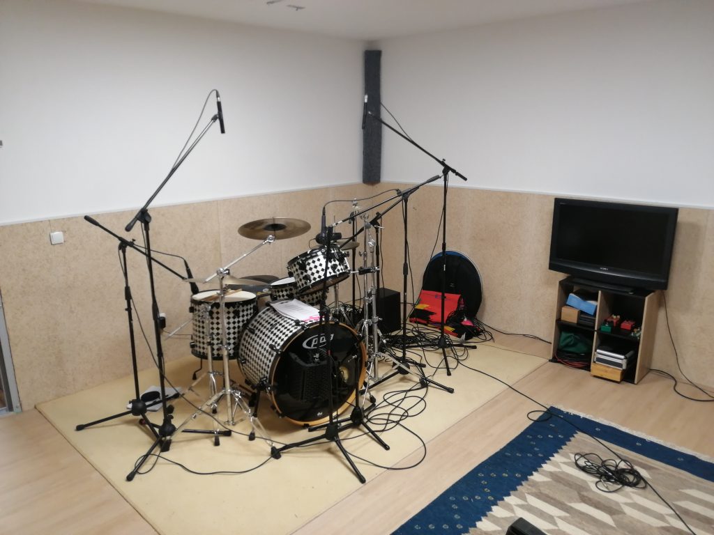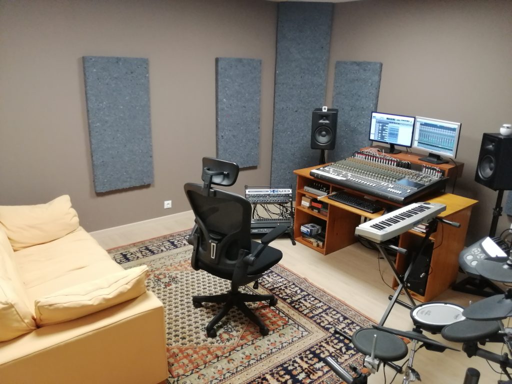El estudio cuenta con una sala de grabación de unos 25 metros cuadrados con un tratamiento acústico intermedio (ni muy seca ni muy viva) y un control room de 22 metros cuadrados.